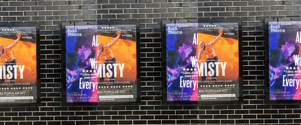 Outside, our full glass door poster cases display all the current and forthcoming events at the theatre.